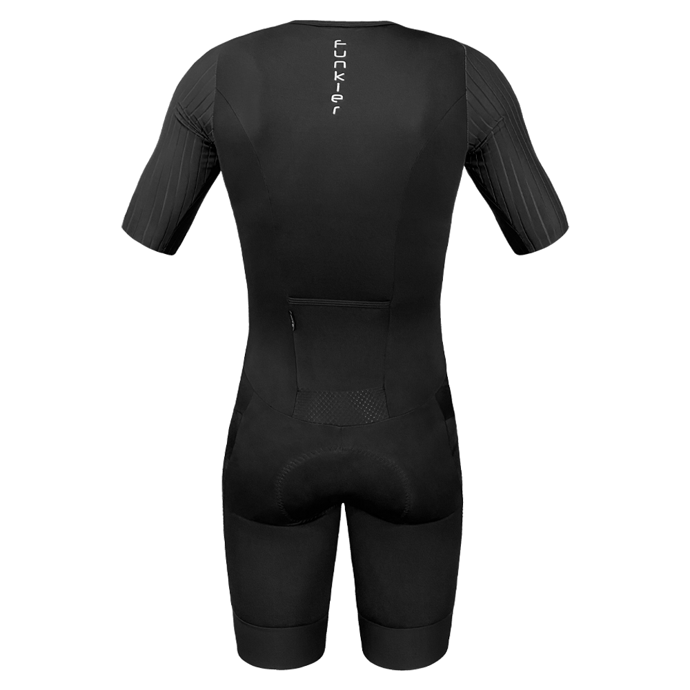 The Elite-level Levico TT suit is perfectly designed for time trials and fast riding as its cutting-edge aerodynamic and elastic cut reduce any drag to improve your riding speed with the tight compression sleeves and silicone cut create maximal fitting while the aerodynamic back pocket complete an elite suit for improved speed and minimal effort as you cut your way through the wind.